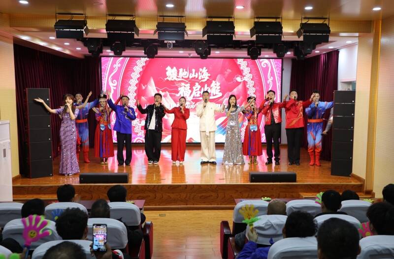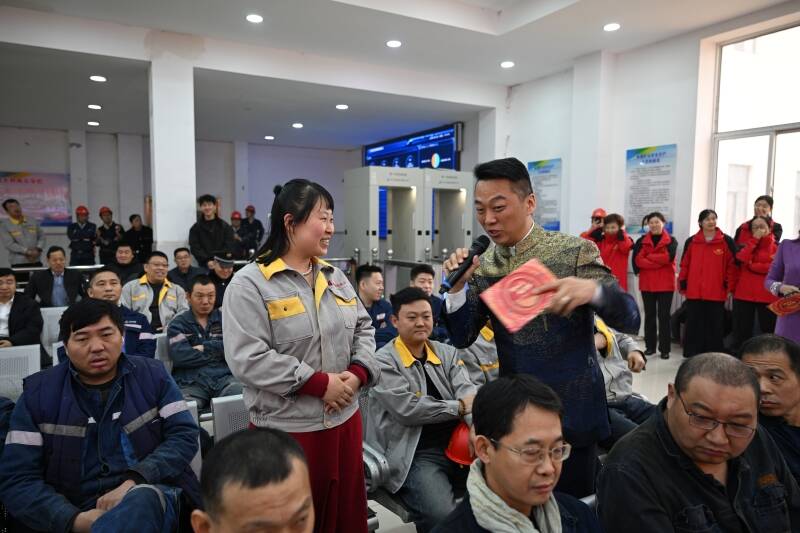 在转龙湾煤矿,演出紧扣矿山实际、贴近职工生活,将安全生产、爱岗敬业、家国情怀融入精彩节目之中。《唯愿平安》直抵人心,唱出了对每一位工友平安健康的真挚期盼与美好祝愿;“马”字成语接龙互动环节趣味十足,现场职工踊跃参与、欢乐不断。欢快激昂的旋律点燃现场热情,饱含温度与力量的文艺演绎,让常年扎根塞外的干部职工在欢声笑语中舒缓身心、提振士气,真切感受到跨越山海的牵挂与温暖,现场掌声雷动、气氛热烈。