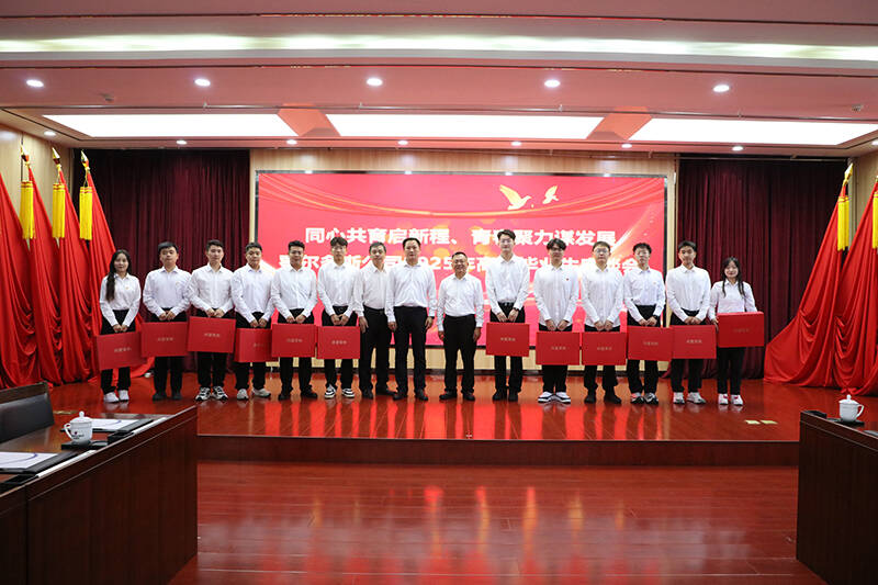 会后,公司领导向新分大学生发放了慰问品并与他们合影留念。(徐光东)