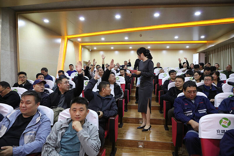“我们国家的国土面积是多少平方公里?”“我国的国歌名字是什么?”。为了活跃现场气氛,主持人抛出了数十道爱国题材有奖答题,现场观众纷纷举手、踊跃抢答,答对题的观众现场发放小奖品。比赛间隙,副总经理、安全总监孟庆燕饶有兴趣地上台献歌一首,瞬间把气氛推向高潮。