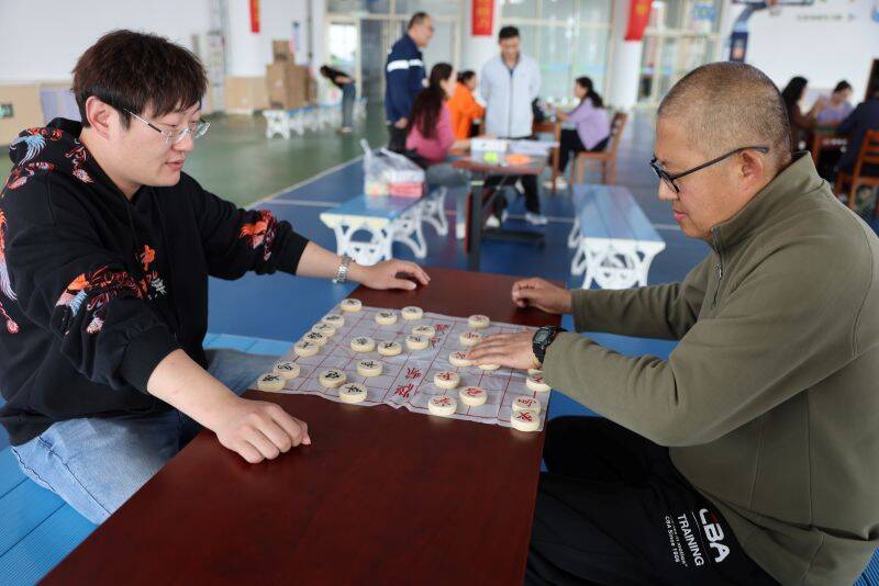 象棋赛场上,红黑棋子在楚河汉界间展开无声交锋。机运工区张保生与综合服务中心王连军的对决尤为精彩,前者以“屏风马”布局稳守防线,后者则以“中炮盘河马”发起猛攻。经过半小时鏖战,张保生抓住对手一步疏漏,以“车马冷着”完成绝杀,现场爆发出热烈掌声。跳棋区域则充满欢声笑语,彩色跳棋在六角星盘上连跳成桥,引得围观者纷纷支招。