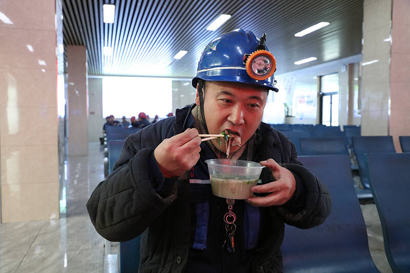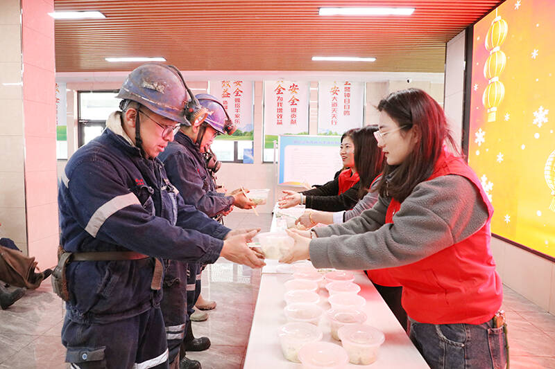 “师傅,喝碗热羊汤暖暖身子!”“这饺子是刚煮好的,趁热吃,下井工作一定要注意安全!”准备下井的职工们陆续走进井口,立刻被这热情的氛围包围。女工协管员和暖心志愿者们穿梭忙碌,将一份份皮薄馅大、象征团圆的饺子和一碗碗精心熬制、热气腾腾的羊汤,递到工友们手中。他们一边忙前忙后送上美食,一边叮嘱大家注意安全。综采工区班长韩西超笑着说:“这碗羊汤下肚,身上暖和了,心里更暖和,咱在工作中更得牢记安全!”咬一口鲜美的饺子,喝一口醇厚的羊汤,暖意瞬间从舌尖传遍全身,驱走了凛冬的寒气,职工们脸上洋溢着幸福的笑容。