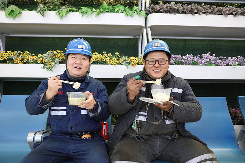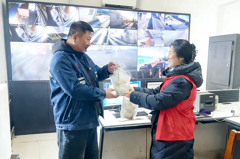 这份温暖并未局限于井口,暖心志愿者们还将热饺子和羊汤送到了坚守在地面岗点的一线职工手中。在煤炭发运集控室,正在值守的班长张建接过餐盒说道:“冬至我们在岗点也有水饺和羊汤,这也太贴心了,谢谢矿上的关心!”