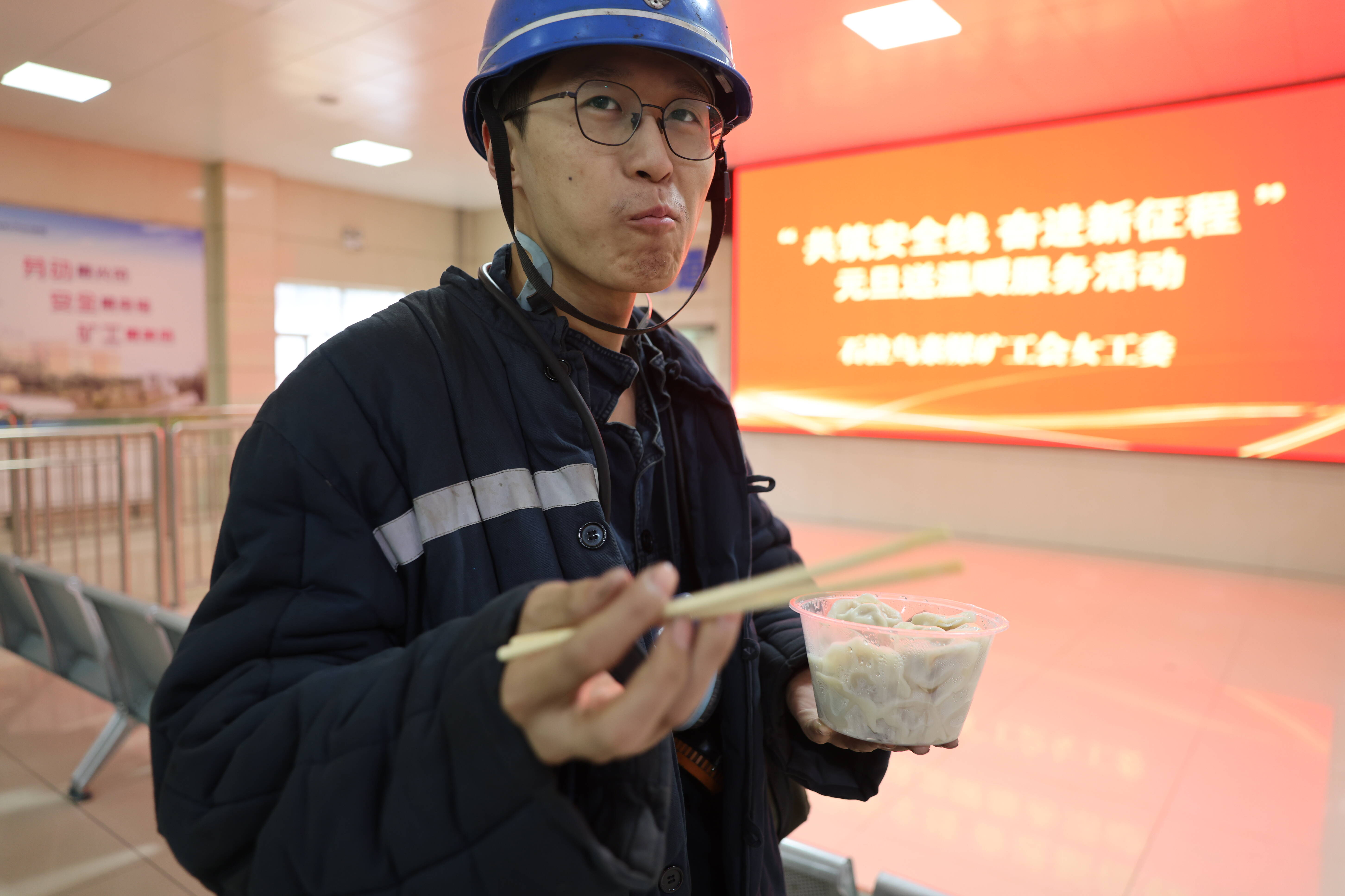12月31日,石拉乌素煤矿女工协管员和暖心志愿者,深入矿井入口、重点岗位等生产前沿。将一份份热气腾腾、寓意美好的“暖心平安餐”送到即将投入工作的职工手中——圆润的饺子象征着团圆与美满,香嫩的鸡腿寄托着活力与能量,醇香的牛奶寓意着生活安康、精力充沛。这份营养搭配均衡的暖心餐,承载着公司领导对职工辛勤付出的真挚感谢与节日关怀。