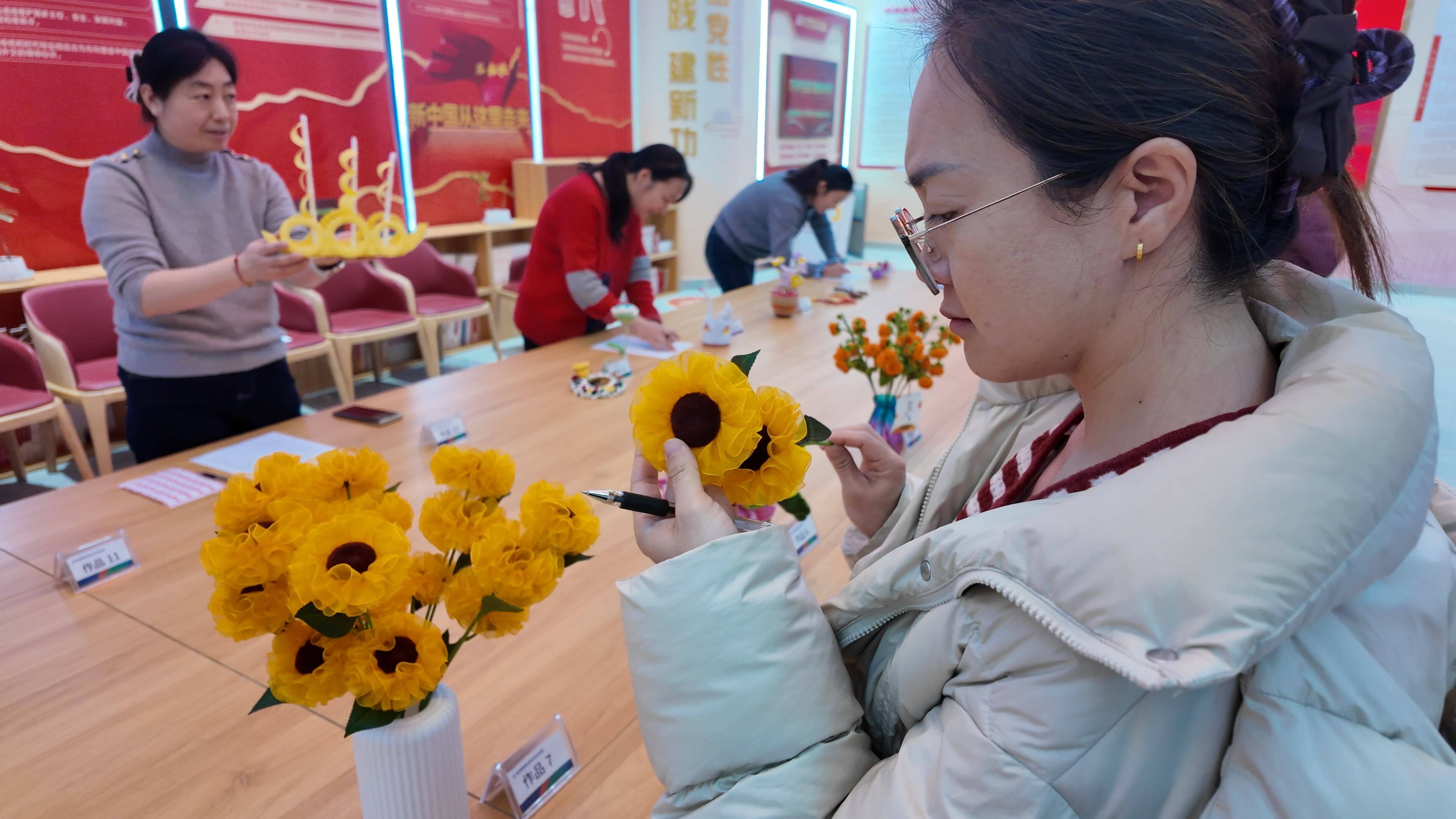 此外,展出的作品形式多样,内容丰富。木雕画上的百灵鸟仿佛引吭高歌,灵动自然;手编的蒲扇精巧别致,充满生活气息;更有利用废旧物品制作的创意手工,如用折纸做的天鹅笔筒,以及形态各异、惟妙惟肖的小动物们,充分展现了女职工们发现美、创造美的能力和积极向上、充满活力的精神风貌。