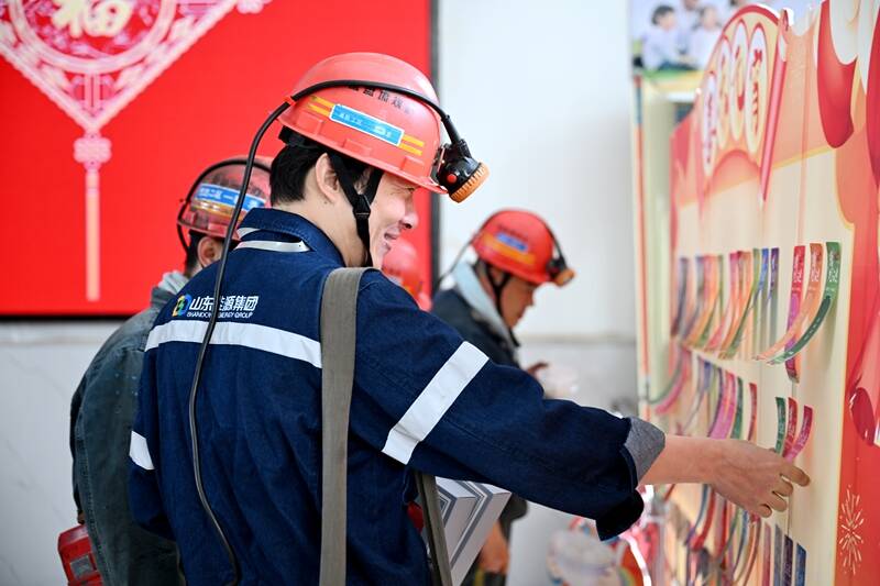 井口同步开展了猜灯谜活动,入井的职工三三两两围在灯谜条下,有的驻足沉思,有的低声讨论,猜对灯谜的职工还能收获暖心小礼品,欢声笑语间洋溢着温馨喜庆的氛围。