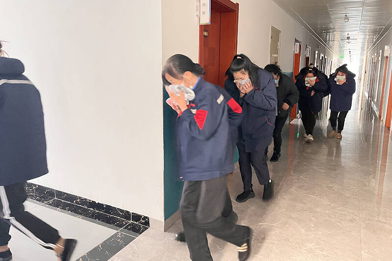 为提高干部职工应对突发火情的实战能力,该矿联合驻矿消防站,精心组织了高层建筑火灾逃生应急演练。随着急促的警报声响起,火灾逃生应急演练在7号职工公寓正式开始。演练模拟着火点释放烟雾,消防控制室值班人员接到火警信号后,立刻用对讲机通知矿消防站前去勘察,消防站人员到场后无法扑灭初起火情,随后立即组织职工疏散请求消防站支援。职工们迅速反应,用湿毛巾、衣物等捂住口鼻,弯腰低姿,沿着消防楼梯疏散路线,快速、有序地撤离至安全地带。与此同时,消防站立即组织消防力量进行支援并汇报矿调度室启动地面火灾应急预案,灭火组、疏散组、警戒组、救护组等人员有序出动。火情现场,灭火组第一时间利用消火栓进行内攻灭火,另一灭火组操作消防车水炮进行外攻灭火配合。整个演练过程指令清晰、反应迅速、配合紧密,通过“以演促练、以练促学”的方式,进一步增强了干部职工的消防安全意识和自救互救能力。
