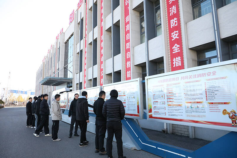 与此同时,矿井充分利用各类宣传载体拓宽传播渠道。悬挂在联建楼上的消防安全宣传条幅格外醒目,办公楼和区队联建楼的电子大屏、广告机持续滚动播放消防安全宣传标语,“龙腾之窗”宣传栏、板报展评与微信公众号推送的消防安全内容图文并茂,在井口候车室,驻矿消防站人员为职工详细讲解灭火器、消防栓的适用范围、操作要领和注意事项,分发消防知识宣传单页,构建起“线上+线下”全方位、立体化宣传矩阵。让消防宣传抬头可见、驻足可学,时刻提醒广大干部职工警醒防风险、紧绷安全弦,使消防安全潜移默化地融入日常。