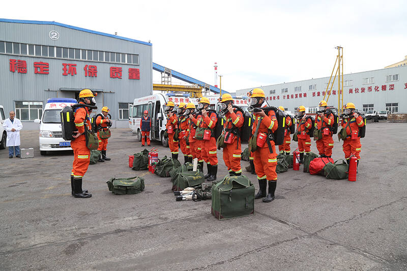 调度员第一时间接到井下报告,并立即向公司领导汇报,公司领导迅速下达指令,启动“瓦斯爆炸事故应急救援预案”,一场紧张有序的救援行动随即展开。各救援小组火速抵达指挥部,共同研究现场救援方案。矿山救护队迅速集结携带专业设备赶赴事故现场展开灭火及救援工作,医护人员迅速到达副斜井待命,后勤保障部门及时将抢险物资调配到位,确保救援工作顺利进行。在应急救援指挥部内,电话铃声此起彼伏,灾情信息与救援命令在各部门之间高效传递,整个演练过程紧张有序、忙而不乱。