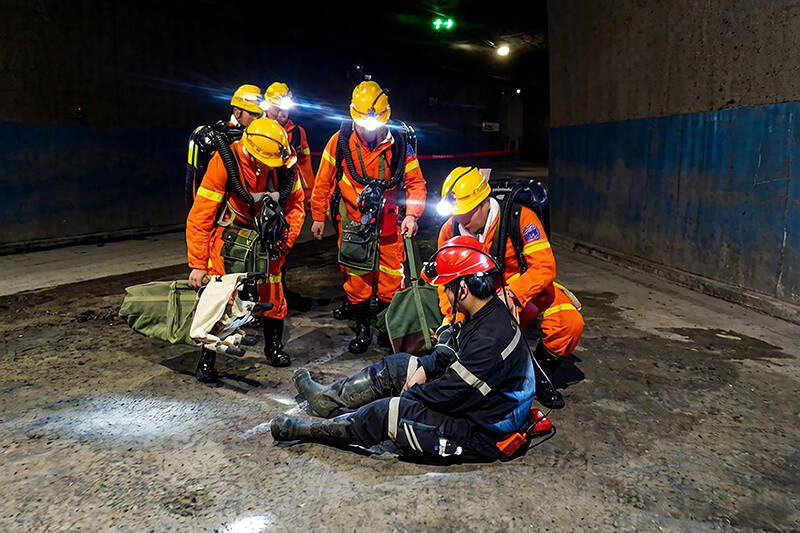 “立即启动一级应急响应,并成立应急救援指挥部,通知矿山救护队及应急救援组成员迅速到调度室集合!”演练总指挥、公司副总经理王焕伟第一时间下达指令,抢险救灾组、技术专家组、安全监督组、医疗救护组、物资供应组等应急小组迅速响应、协同作战。矿山救护队携带专业救援装备快速入井,在中央变电所设立井下救援基地,分小队开展灾区探察、瓦斯及有毒有害气体监测、火灾扑救和被困人员搜救。与此同时,井下跟班队长、瓦检员、安监员现场组织人员沿避灾路线快速有序撤离,实时反馈现场情况。救护队队长与现场总指挥高波全力配合紧张救援,被困受伤人员被成功营救,在采取救治措施后护送升井。其余演练人员也有序撤离,全部安全升井。11时38分,演练救援活动全部顺利完成。